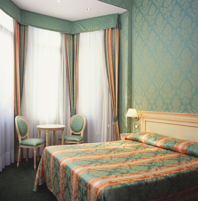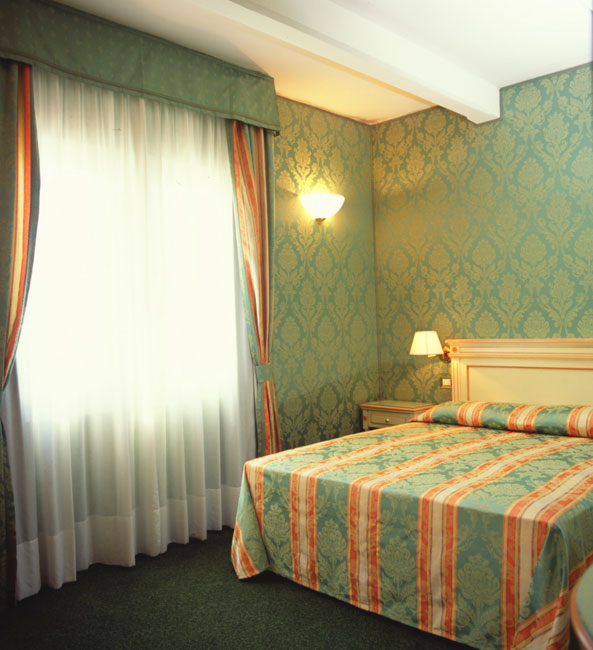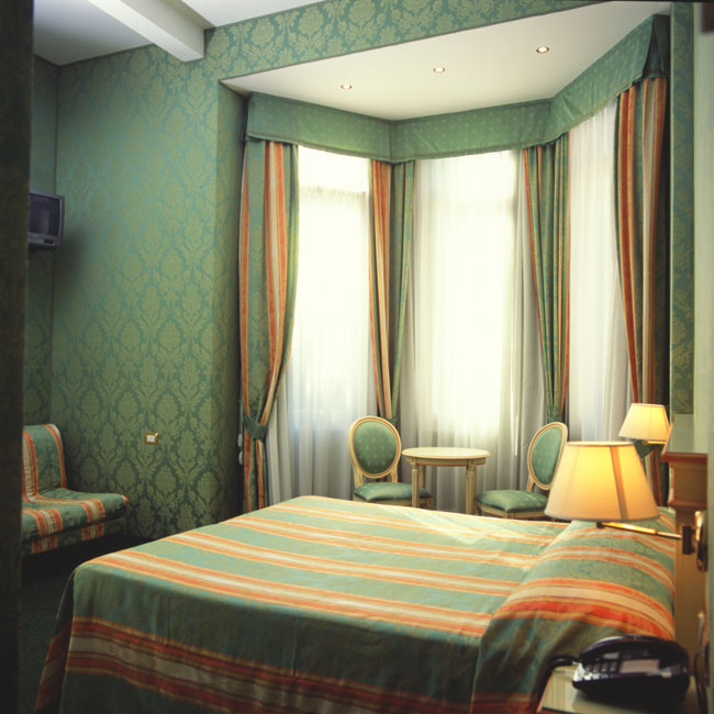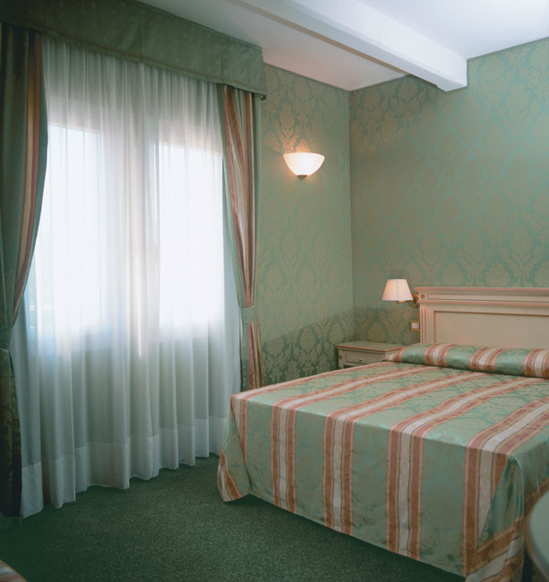 Tutte le camere hanno servizi privati con bidet, doccia e asciugacapelli; in ognuno troverete il servizio di cortesia con shampoo, bagnoschiuma e sapone. Le stanze di questo hotel al Lido di Venezia sono dotate di grandi finestre apribili, con vetrocamera a specchio e speciali filtri per mitigare il riflesso del sole senza ridurre la luminosità dell'ambiente. Pesanti tende garantiscono l'oscuramento per la notte.